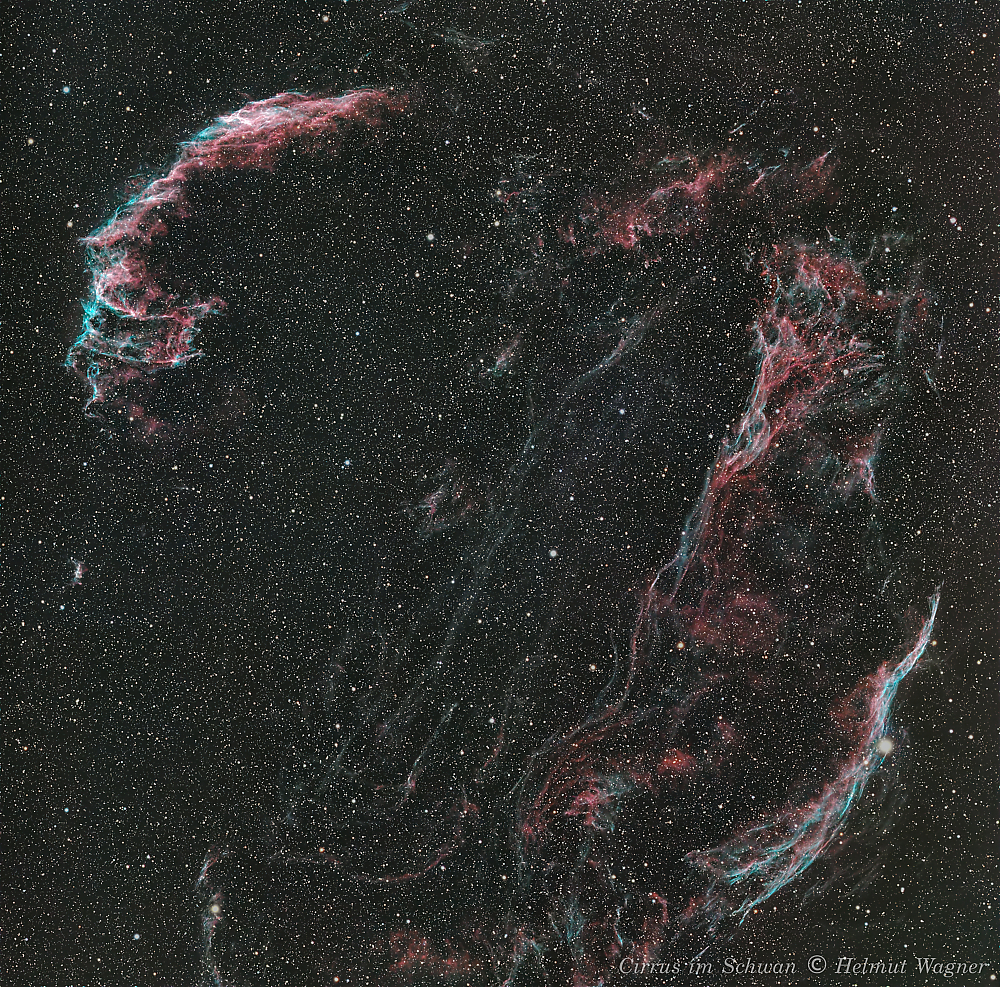 Cirrusnebel – Helmut Wagner- August 2025 – Sharpstar 50EDPH, Touptek 533C/M, Schmalband-Filter Optolong L-eXtreme, 60x120s RGB, 100x120s Mono