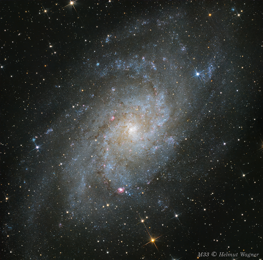 M33 Dreiecksgalaxie – Helmut Wagner – Dezember 2025 – Skywatcher 150/750 PDS, Touptek 533C/M, 120x60s RGB, 180x60s Mono